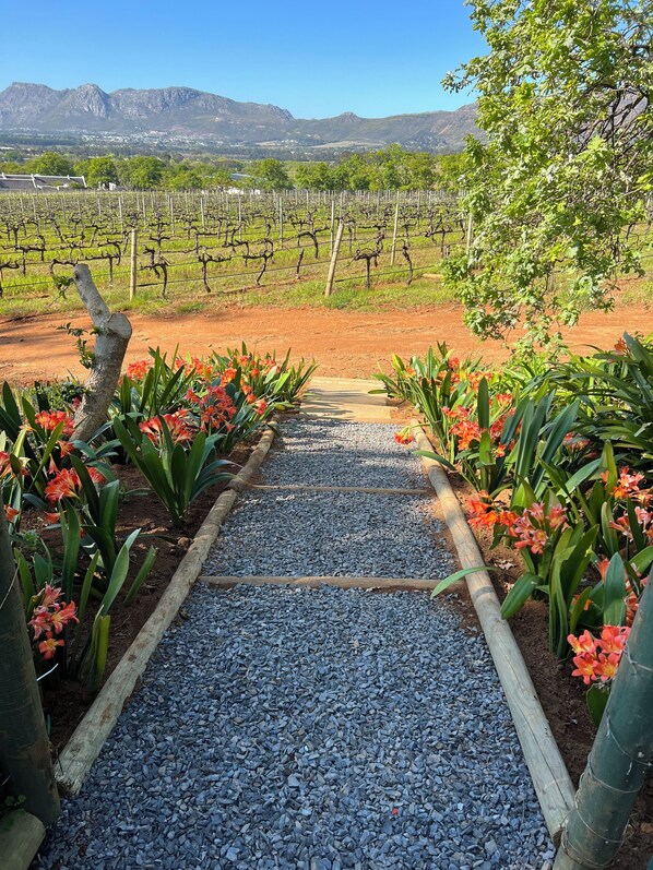 Stylish Garden Cottage with magnificent views across vineyard to mountain scapes