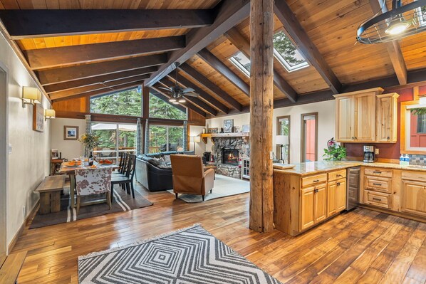 Timberwood Cabin is a cozy 3-bed, 2-bath home in Carnelian Bay blending rustic Tahoe charm with modern comfort. Enjoy a private hot tub, stone fireplace, vaulted ceilings, and a vintage vinyl collection. Pet-friendly and single-level, it’s close to Patton Beach, Gar Woods, tennis courts, and year-round Lake Tahoe adventure.