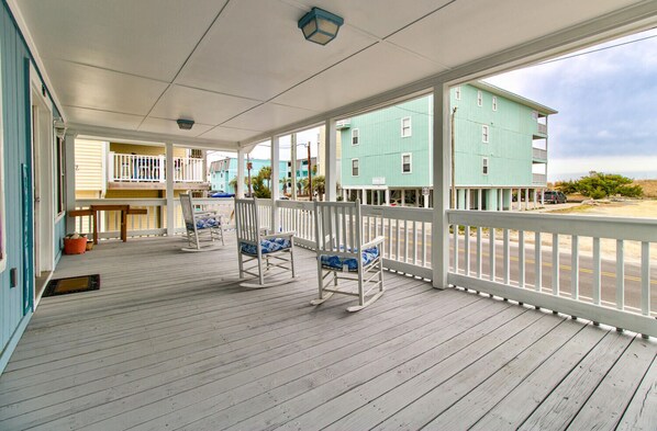 * Ocean-View Porch with Rocking Chairs