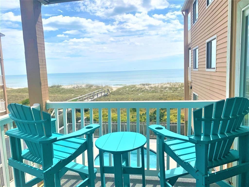 You will not believe all the space!! This oceanfront, Carolina Beach Vacation Rental home is a dream come true for any vacationing family. The main floor has a huge living area with large flat screen smart TV, kitchen and dining area, one half bath and a private den/study with a twin sized day bed and trundle. The second floor has four bedrooms all with smart TVs and 3 full baths. The washer and dryer closet is also on the second floor. The top floor is one large bedroom with one full bath and it's own smart TV. This top floor has a total of 4 twin beds (bunk beds) 2 queens. This would be the perfect spot for all the kids to play and sleep. There is one large covered porch with chairs and the top floor has a smaller open air deck area. Underneath this home you will find a great picnic table area that would be perfect for those summertime meals. The private walkway to the beach has two outdoor showers to rinse off after a great day on the beach. The views of the Atlantic Ocean are one of a kind. This home is meant to be enjoyed and comes with all the comforts of home. As of 2023, there is a charging station at this home for an Electric Vehicle. There are a total of 7 smart TVs with HD Antenna's. Cable is not provided. Parking for 5 - 6 vehicles (max). Just a few short blocks south of the Boardwalk where you are just a brief walk to family style or fine dining, coffee shops, ice cream shops and the Carolina Beach Boardwalk.