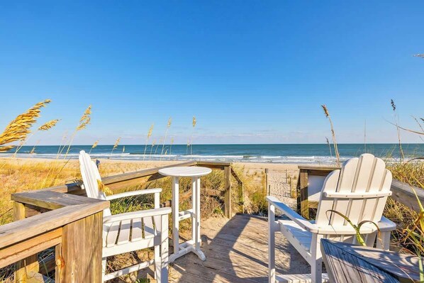 På stranden og med boblebad og beliggenhet nær Carolina Beach promenade