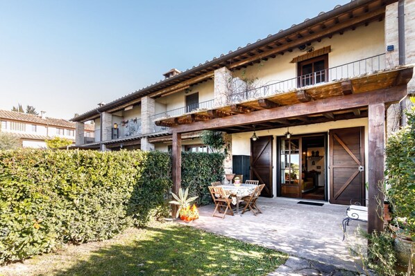 GuestHost - Nestled between the Crete Senesi and Chianti, this home offers a breathtaking view of the countryside and Siena, just a 10-minute drive away. Part of a renovated historic farmhouse, it is a well-furnished townhouse with a private garden and v
