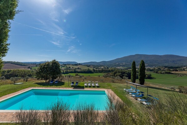 Åpne fra siste lørdag i april til første lørdagen i oktober. Den rektangulære-formet svømmebasseng måler 14 x 7 m med en maksimal dybde på 1,95 m, og kan nås ved å ta en stein trapp fra hagen ovenfor. Herfra kan du nyte en flott utsikt over Mount Cetona og det omkringliggende landskapet. Bassenget er utstyrt med lysthus.