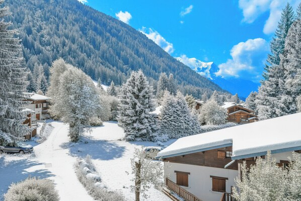 Den 2-etasjes boligen har nærhet til et avdekket offentlig parkeringsplass (1-2 minutters gange unna), den lokale busstasjonen (20 meter unna) og Grands Montets skiheis og barnas Panda-klubb