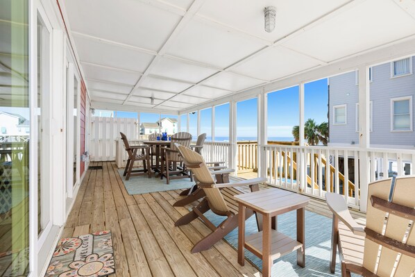 "Bacon in the Sun" har WRAP Around Overstørrelse PORCHES av Stue og Master Bedroom, utstyrt med strand-tema møbler mens du slapper av med utsikt over Atlanterhavet. Soloppgang utsikt fra Master Bedroom og verandaer er utrolig!