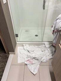 The cleanliness of the shower could be improved.