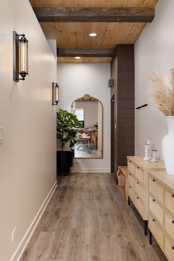 Bathroom: Luxurious features include a brand-new LG washer and dryer (detergent and dryer sheets provided), a wall-mounted towel warmer that heats up to 155F, and a shower with two shower heads: a fixed rainfall shower head for a spa-like experience and a detachable handheld shower head for added convenience and flexibility.