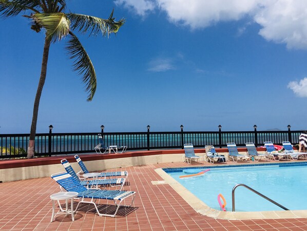 Villa-style, 3 bedroom beach condolocated in a sea-front, gated complex with onsite, pool-side bar andrestaurant! Everything you need to enjoy paradise, including a private terrace with ocean views from the lofted primary suite. Full kitchen, three full bathrooms, newly decorated! Less than ten minutes from the Christiansted Boardwalk where you can shop, dine, and drink! It truly is the best of both worlds: A secluded retreat with easy access to boutiques and nightlife. BONUS: The unit includes use of a stand-up paddle board and sand toys so you can get the most out of your island stay. NOTE: We are planning to renovate the bathrooms next year so we are offering a special rate now! Book now fora great deal!