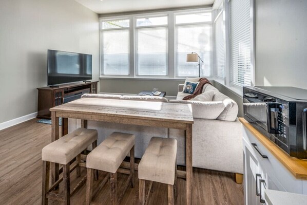 We look forward to hosting you! Instructions for the sofa bed, electric fireplace, and TV are in the manual binder on the small table. Contact us for any questions or special requests.