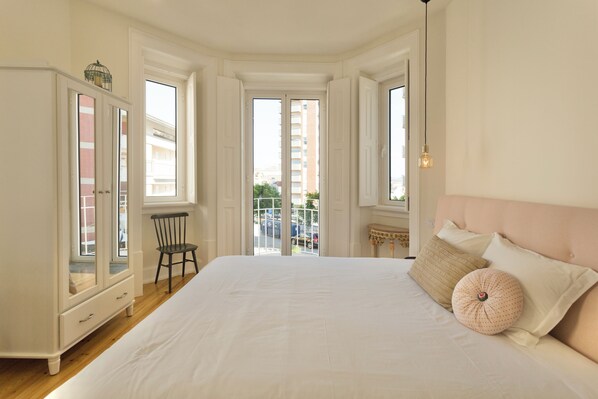 Dobbeltrom, 1 queensize-seng, balkong, hageutsikt