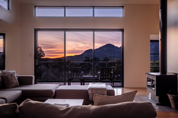 Fra det romslige dekkets blikk på majesteten i The Hazards Mountains og se bølgene bryte ned på Richardsons strand, en utsikt som du kan sette pris på fra det lette hovedområdet med åpen spisestue, stue og kjøkken i moderne stil med butlers pantry.