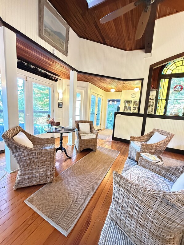 Innendørs på Surf Sanctuary møter fortiden nåtiden. Denne gamle kirken omgjort til et hjem tilbyr moderne fasiliteter og særtrekk ved en tidligere 120 år gammel kirke. Funksjoner inkluderer; tunge bjelker i katedralen, åtte 2-etasjers glassmalerier, et lyst og luftig fire årstider rom med felt peis, moderne kjøkken og bad med vintage aksenter, flotte soverom suiter, treningsstudio og designmøbler aksent med velutstyrte antikviteter.
