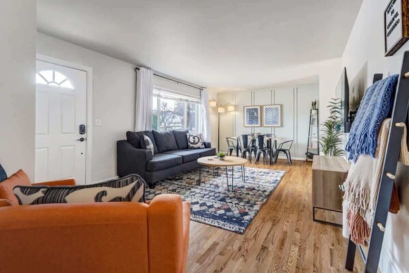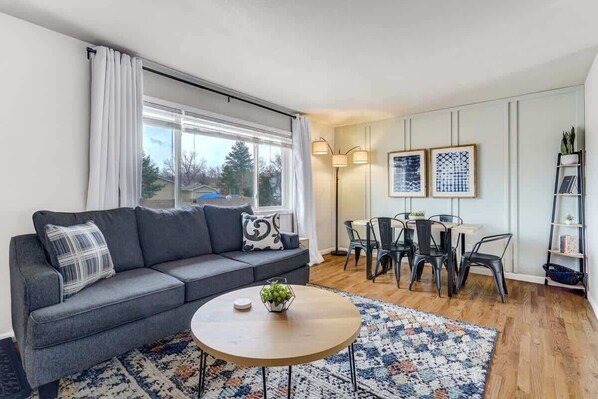 Welcome to our carefully curated short-term rental in Colorado, perfect for couples, families, and business travelers seeking comfort and convenience. Whether you're here for a business trip, vacation, or weekend getaway, our meticulously designed accommodation caters to your every need. Step into this cozy home, where comfort and style blend perfectly amidst stunning hardwood floors, warm natural light, and tasteful decor.