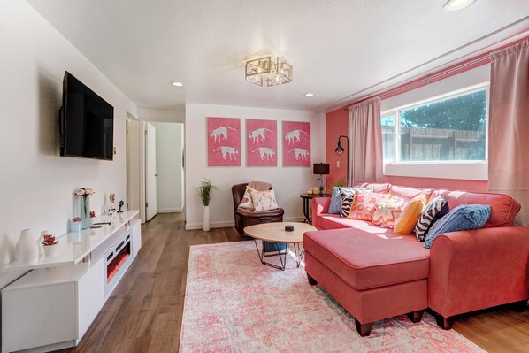 Anmeldelser av Pink Panther Parlor - Cozy 2-BR w/ Mountain Views, King Bed & Pet-Friendly Yard