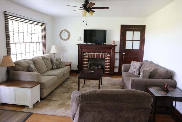 This sweet, cottage-like house is the perfect place for a family vacation or getaway. The bedrooms are spacious with a separate living room, dining room, kitchen and two full bathrooms. The kitchen is complete with a refrigerator, gas range, microwave, and cooking and dining basics. There is close and convenient parking.