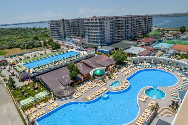 Ja, dette overnattingsstedet har et innendørsbasseng og 7 utendørsbassenger.