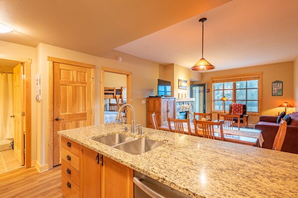 Cheerfully relax in this spacious 966 sq. ft. Unit with stunning Views. The Master Bedroom contains a King Size Bed, a Full Size Bath with a double vanity. The 2nd Bedroom is comprised of a captain's bunk bed plus a twin bed, large windows and a perfect sunset deck overlook vail pass. In the Living Room, Amenities include a Queen Sofa Sleeper, bringing the total Accommodations to 8 people, Free WiFi, a cozy Gas Fireplace, a Dining area, TV/DVD and an Outdoor Balcony. The Full Size Kitchen with granite countertops is integrated into the Open Floor Plan. Heated Underground parking complete the grand Amenities offered for guests of this building. Enjoy walking just a short 2-3 minute walk across the Covered Bridge to the slopes of Copper Mountain and to the numerous shops and restaurants in the Center Village. | Summit County Colorado Short Term Rental Permit #STR22-R-00093| One parking space per condo available on-site. Any additional vehicles have to park at the North Alpine Lot. Please note that Copper is now charging $20 per night for overflow parking.