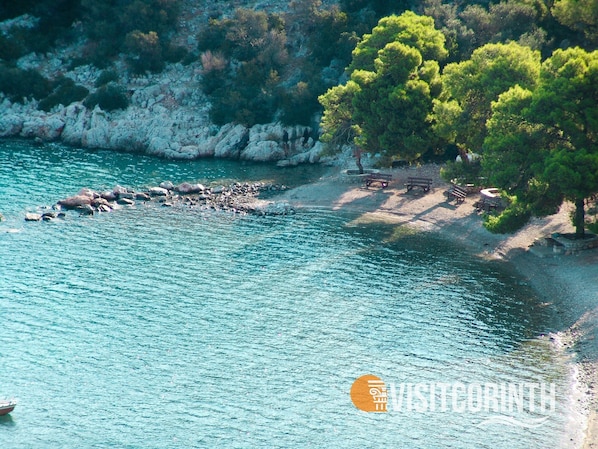 Tradisjonelt korintisk hus nær stranden. Naturlig beliggenhet med utsikt mot sjø og skog sammen. Stille sted. Tomt i naturen 200 meter fra sjøen (nesten privat) Nær Athen KUN 120 km, 25 km fra Korinthos ned towm og 20 km fra det gamle teatret Epidaurus. sted for meditasjon og fri for din egen idrett som: sykkel, yoga, klatring e. c.t Vi håper du bor en fin ferie.