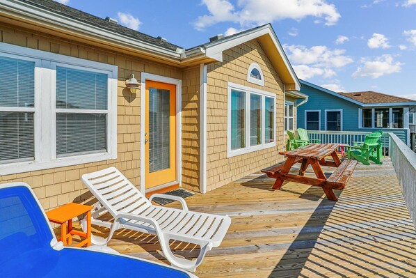 Vakre feriehus ved Oceanside Outer Banks i Crown Point med lett tilgang til stranden på slutten av Kings Grant Dr. Dette hjemmet er perfekt for en familieferie til ytre bredder. Flyt på en flåte i det private bassenget eller skyt et bassengspill i resepsjonen. Hyggelige brede dekk tilbyr et flott sted å lene deg tilbake og lese romanen du har ventet på å bli ferdig med. Bare få minutter unna med sykkel eller bil, fra lokale restauranter, butikker, kino og dagligvarebutikk. Margarita Girl er akkurat stedet for deg og din familie! Hvis du ønsker å få plass i en runde golf, er dette hjemmet medlem av K Club-programmet - og tilbyr spesielle golfpriser, privilegier og tilgang til Kilmarlic Golf Club. (Gjestene oppfordres til å reservere starttider i god tid før ankomst.)