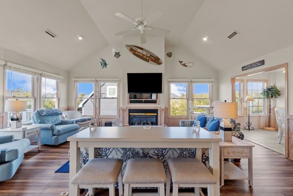 At Don't Worry Beach Happy, you'll love the open and spacious floor plan. The living area features plenty of seating for your family and friends along with a flatscreen TV. The kitchen has everything a master chef could need to prepare meals during your Corolla vacation. You can dine as a group at the dining room table with seating for 8 and additional breakfast nook seating for 4. Each bedroom features comfy bedding and provides the perfect space to relax, unwind, and get some well deserved rest during your stay. Don't Worry Beach Happy has everything you need for the best Outer Banks vacation so book your stay now!
