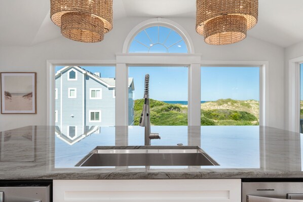 Step inside this impressive home and you will understand why it's named "Above and Beyond." Everything within this luxurious OBX home goes above and beyond to make your stay exceptional. The living room is bright and airy, with plenty of comfortable seating for everyone to relax and enjoy the stunning ocean views. And speaking of views, head up to the rooftop deck to take in the breathtaking panoramic vistas of the Atlantic Ocean and neighboring nature preserve. It's the perfect place to enjoy a cup of coffee in the morning, or a glass of wine after dinner.