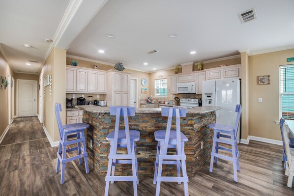 Welcome to 2-Quila-A Little Time! Located on the corner of Eleventh and Sand Burr, with a short walk to the Beach! This colorful pet friendly, coastal cutie is a 3 bedroom, 2 bath. Max occupancy is 10 comfortably! Great Game room in the garage to keep the kids entertained, or even the parents, equipped with a shuffleboard table, and a few other games to play! Don't forget about the outdoor family area equipped with a large flat screen TV. Great area for family cookouts. All guests will have access to the community pool. Exterior camera overlooking the driveway.