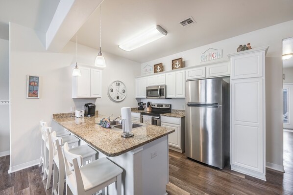 Dette stille Beachside-komplekset ligger bare ett kvartal unna stranden. Så det er nær nok til å nyte strandstemningen, men ikke så nær at du ikke kan slippe unna den når ting blir travelt. Lokale attraksjoner, restauranter og shoppingmuligheter ligger bare en kort kjøretur unna, og den helt nye vannparken Schlitterbahn ligger rett rundt hjørnet.