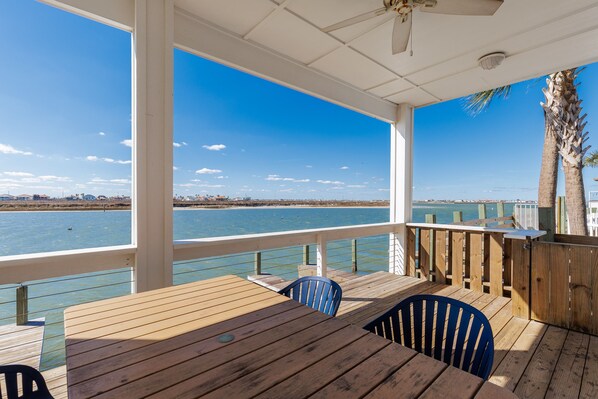 Waterfront patio and private balconies with canal views