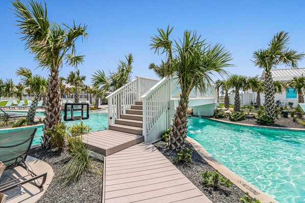 Your wristbands provide access to incredible amenities, including two elegant resort-style pools that are heated during our winter season. A designated area at the beach with food services and air-conditioned bathrooms. During the summer, poolside cabanas, golf carts, beach chairs, and umbrellas are available to rent via Guest Services.