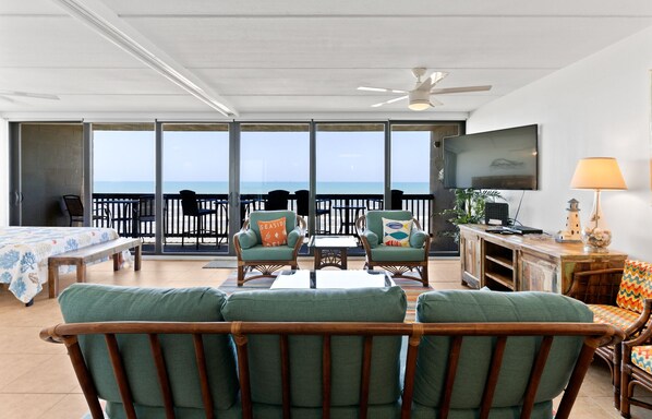You will have the perfect view in this top-floor unit with décor and colors that always keep the beach in mind.