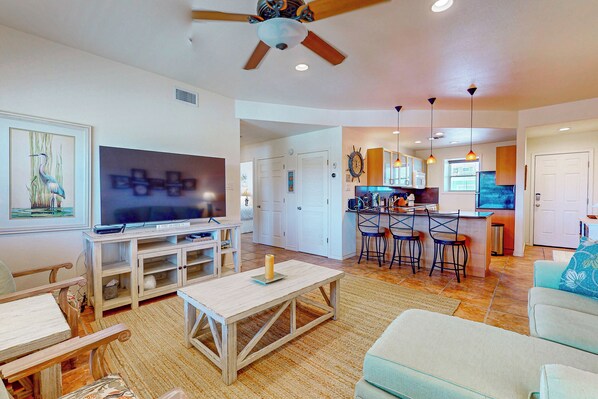 Escape to IR38, a 2-bedroom, 2-bathroom, 2nd floor condo with a private balcony overlooking the pool. Enjoy stunning Gulf views while sipping your morning coffee. This spacious condo sleeps 6 people comfortably and is fully equipped with a full-size kitchen, washer and dryer and all the comforts of home. Enjoy resort amenities including basketball, pickleball, tennis, sand volleyball, grills and picnic tables throughout the complex. This is the perfect spot for a family vacation or a weekend getaway.