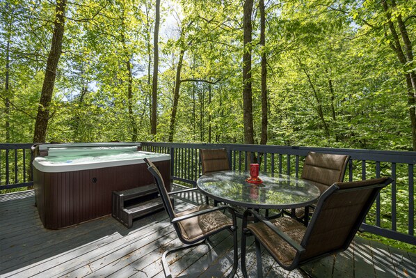 Smoky Mountain Song Cottage is a 3-story treehouse-style cottage offering the perfect balance of privacy and convenience at an amazing value! Perched at the top of a half-mile gravel driveway, this secluded retreat provides stunning views and a relaxing atmosphere. Important note: Due to the steep driveway, AWD, FWD, or 4WD vehicles are highly recommended. Rear-wheel drive cars or minivans are not suitable for access. No refunds if you do not bring a vehicle that can access the property. It's unrivaled privacy and peace are best enjoyed by guests that don't mind mountain road driving.