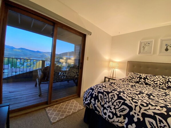 This property sleeps 5 in its 2 bedrooms. One bedroom has a cozy queen sized bed as well a bunk bed. The master bedroom has a luxurious king sized bed. New mattresses and private entrances to bedrooms for catching maximum Zzzz’s between adventures. From the master bedroom (as well as the living area) you have access to your private balcony where you can enjoy the views while sipping on a cup of coffee or your favorite apres-ski beverage. The two separate and full recently remodeled bathrooms will give everyone plenty of space as well. Snuggle up in bed with a movie in the master bedroom or lay on the nostalgia by listening to a record in the living room. The ceiling fans in both bedrooms will keep you comfortable winter or summer. Ample closet space and dressers.