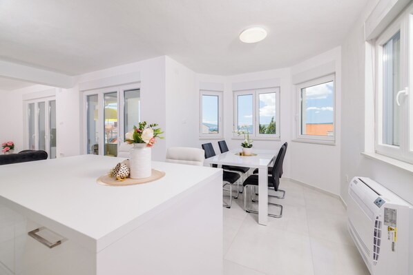Alle gjesterommene på Modern vacation apartment in Selce byr på komfort i form av klimaanlegg samt fasiliteter som wi-fi (inkludert).