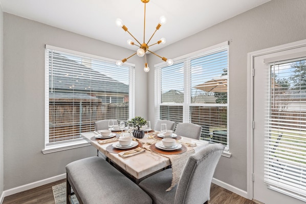 Alle gjesterommene på 4BRs 4TVs Sleep 10 Games Fully Fenced Backyard kan skilte med goder i form av klimaanlegg og eget spiseområde i tillegg til fasiliteter som wi-fi (inkludert) og kontorstol.
