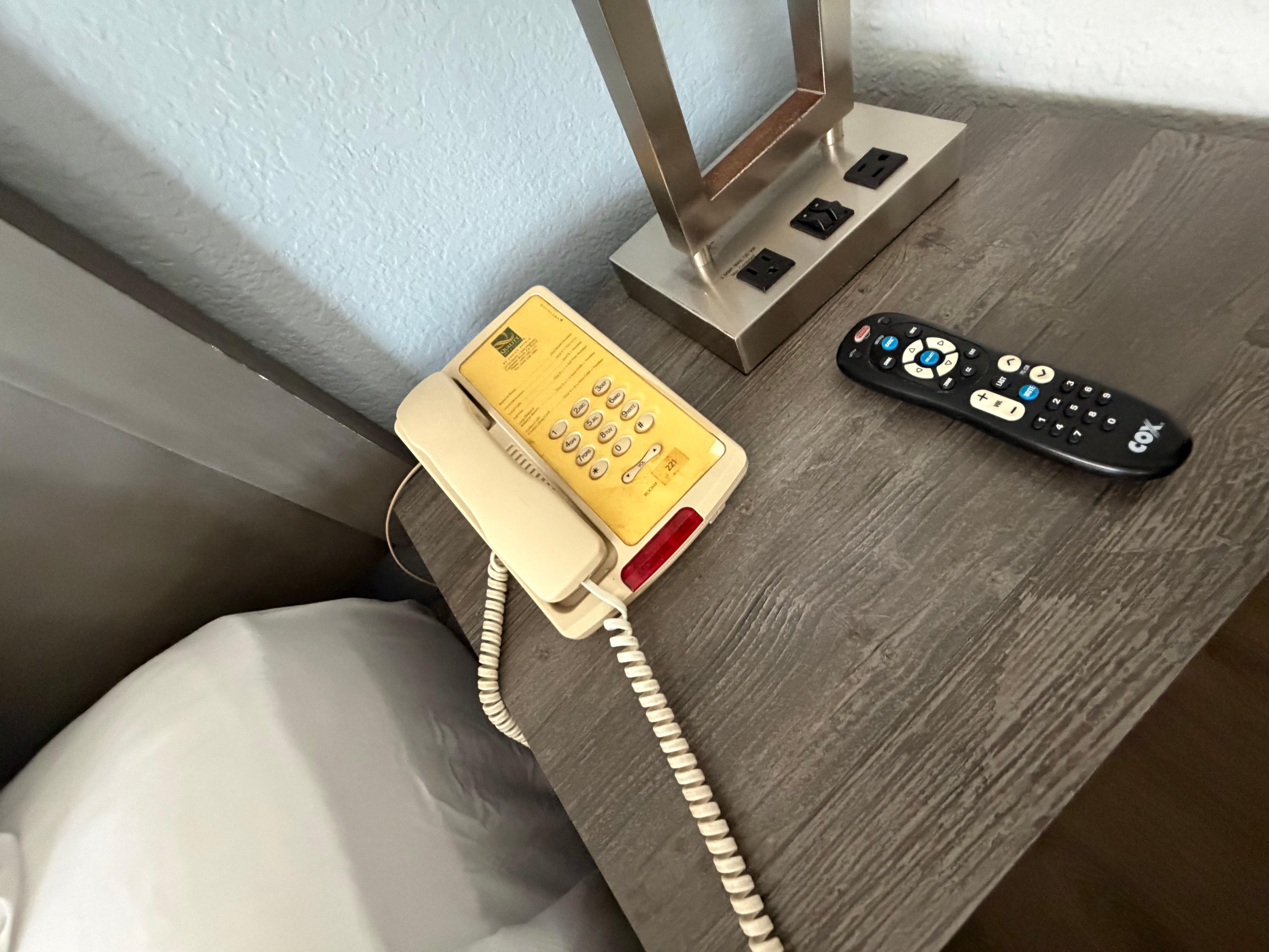 The dead bolt lock was broken. Light fixture didn’t work. One charging station unoperable. Bathroom facet poor operation. Shower floor and handicap seat in dire need of refinishing. Need I say more? No problem with staff etc.