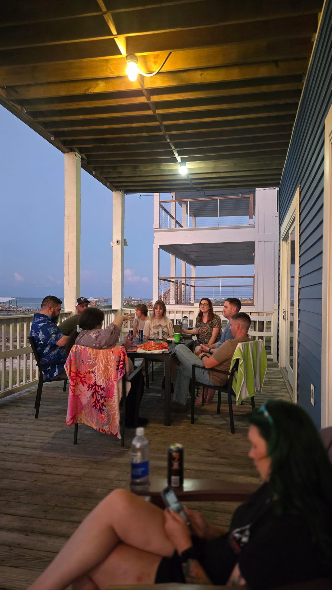 This house was perfect for our 2 families to stay in! It has a very open living area with plenty of seating for everyone, both inside and on the back porch. We loved the water views of both the Gulf from the front porch, and the bay, it was so nice to be able to just walk down the steps and go right to the beach!