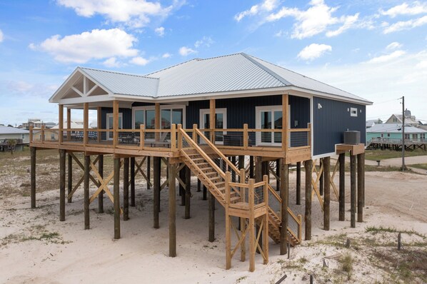 Unit 052 - Blue Bayou - Stunning 5 bedroom/ 4 bathroom property located on a 2nd tier of Gulf Front lot offering breathtaking views of the Gulf. This spacious and beautifully appointed home offers the perfect setting for your next family vacation or group getaway. Each of the three Gulf-facing rooms feature king beds, allowing you to wake up each morning to the stunning panoramic views of the Gulf. The front room off the kitchen has a cozy queen bed. The 5th bedroom is uniquely designed with a twin bunk over a king bed, complete with a twin trundle. While the king bed is best suited for teens and children due to being a bunk bed, it provides a fun and unique sleeping arrangement for children or groups. Corner, gulf facing rooms have bathrooms with marble walk in showers. Queen bedroom has an en-suite bathroom with a walk in shower. The fourth bath is located in the hallway near the 5th bedroom. This vacation rental home is perfect for entertaining with a spacious living & kitchen area, and outdoor living space. The home will even feature a beach volleyball court! The large deck offers plenty of seating to take in the stunning Gulf views while enjoying your morning coffee or relaxing in the evening breeze. Located just steps away from the beaches of the Gulf, this vacation rental home is the perfect place to relax, unwind, and make unforgettable memories with your loved ones.