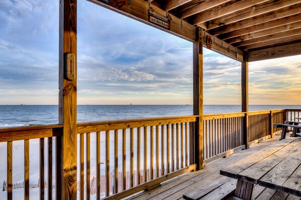 Dette hjemmet i Gulf-fronten er et fristed for strandgjengere, syklister, sportsfiskere og fuglere. Du kan ta en båt ut til det 132 fot lange Sand Island fyrtårn, som ligger omtrent tre mil sør for inngangen til Mobile Bay. De fascinerende marineutstillingene på Dauphin Island Sea Lab ved Estuarium ligger seks miles øst, og det er også det fantastisk bevarte Fort Gaines og Dauphin Island Audubon Bird Sanctuary. Syklister vil også glede seg over miles av asfalterte sykkelstier på øya - du kan til og med sykle til fergen og sykle over til Fort Morgan for en perfekt dagstur.