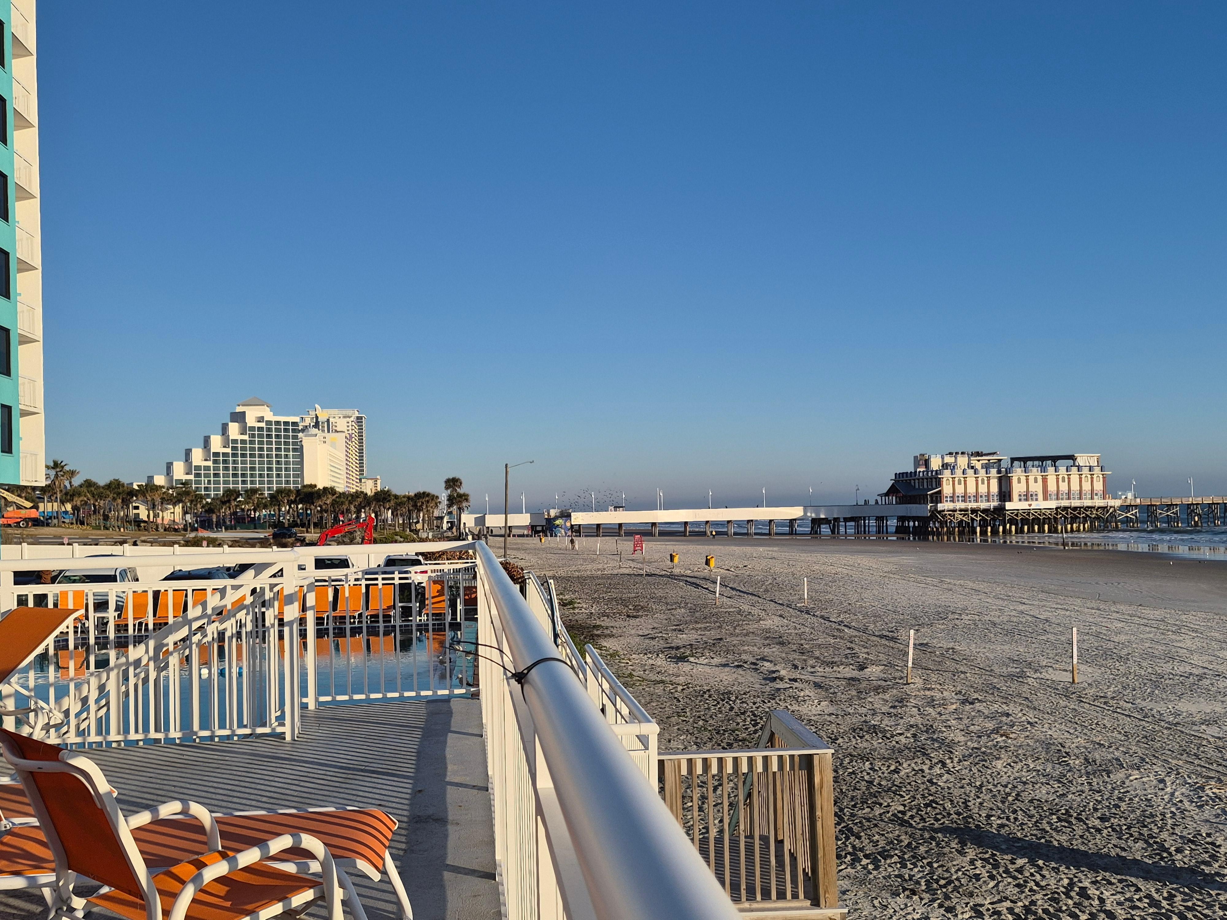 Ble møtt av fantastiske ansatte i resepsjonen, fikk til og med sjekket inn tidlig og oppgradert rom. Rommet var stort og fint, men gulvet var så skittent at vi ikke kunne gå uten sko- ble veldig skitne på bena. Forstår at det blir mye sand, men gulvet var helt seigt. Komfortable senger, flott utsikt. En del spisesteder i grei gangavstand. Dessverre var mange stengt. Litt skummelt område, mange streifere. Hadde planlagt å bruke hotellet som base for dagsturer, og det passet fint. Hadde fine turer til blant annet Mount Dora og DeLand. Frokosten var ikke mer enn grei, spesielt når vi hadde 5 netter. En av frokostvertene var veldig påpasselig og fylte på etterhvert før alt gikk tomt, hun andre tror vi helst ville vært et annet sted- ble nesten sur da jeg avbrøt henne mens hun satt og så på mobilen sin, for å spørre om hun kunne fylle på mer mat, da det var tomt før kl 9. Housekeeping var veldig hyggelige og rengjorde rommet oftere enn vi fikk beskjed om, de kom også og byttet håndklær ofte. Så alt i alt et fint opphold.