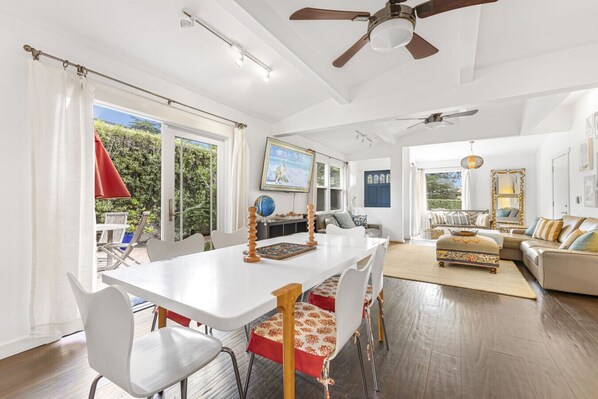 The location is ideal — quiet neighborhood with easy access to both the beach and restaurants. The house was clean and uncluttered but still well-stocked. The host responded to questions in minutes and provided great tips about the area. We’ll definitely come back.