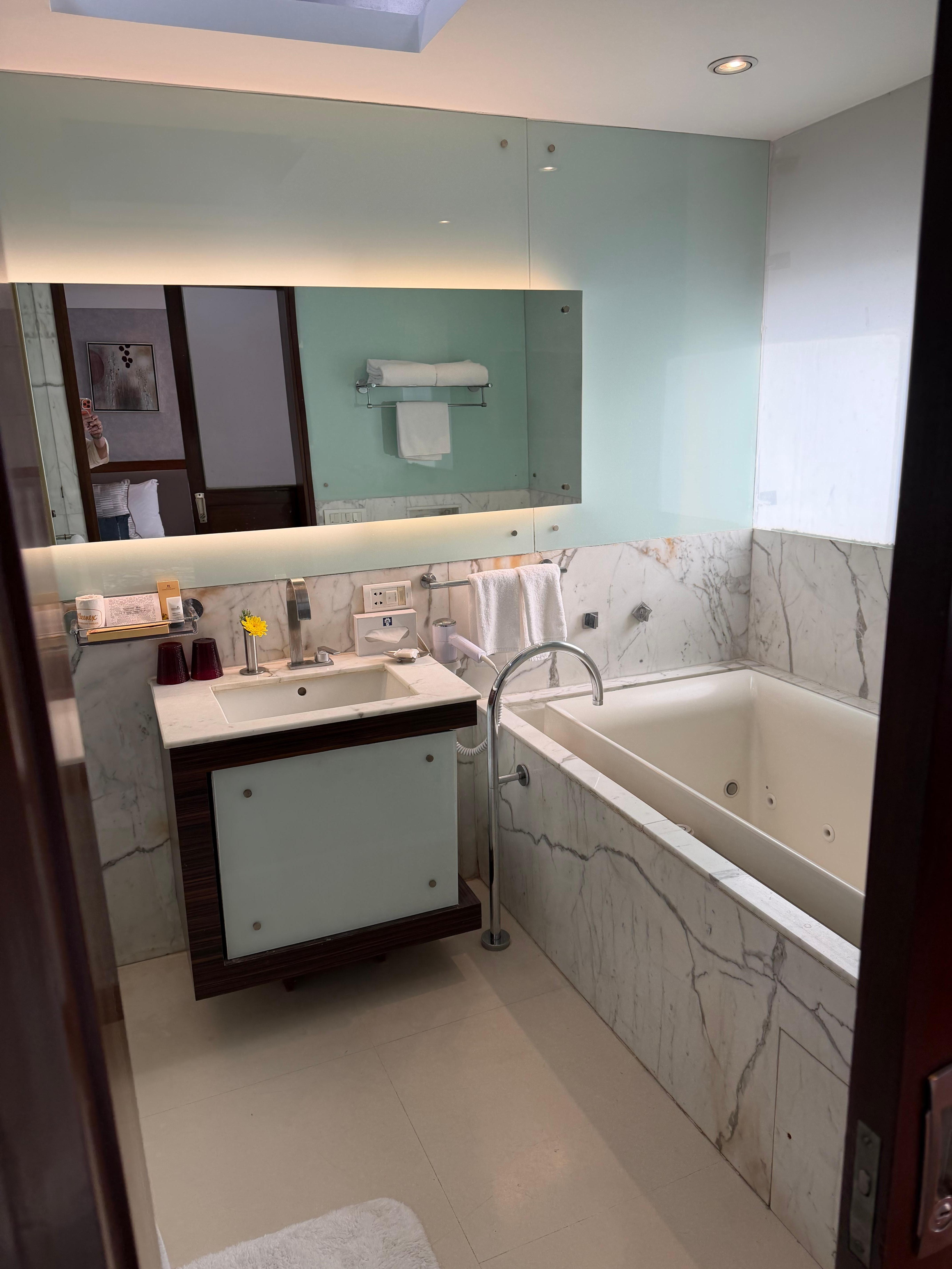 The breakfast needs more non-veg options and the bathrooms should have a bath tub in them. The hotel otherwise is very good overall.