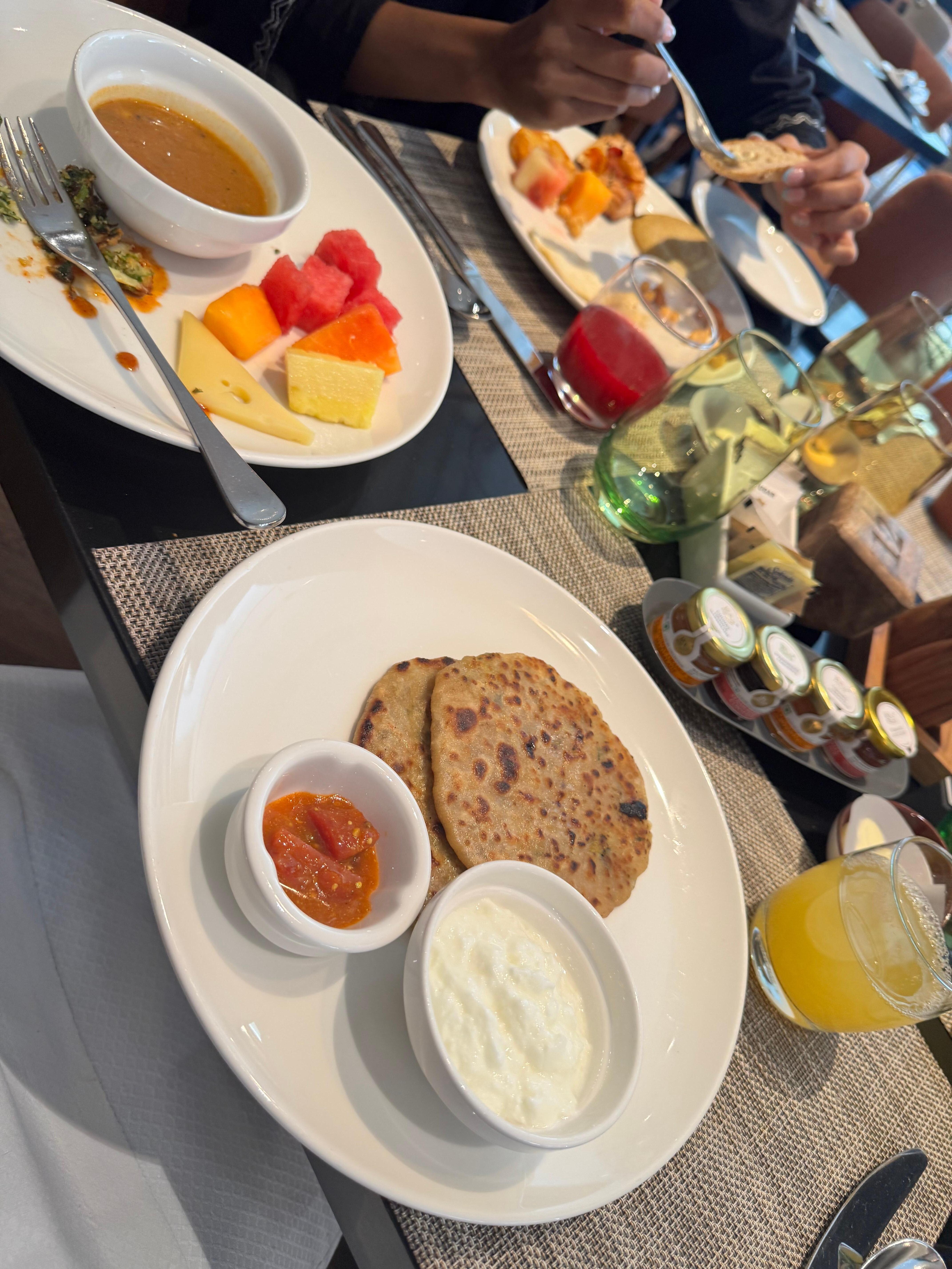 Frokostbuffé serveres daglig fra kl. 06.30 til kl. 10.30 og koster INR 2 950 for voksne og INR 1 475 for barn