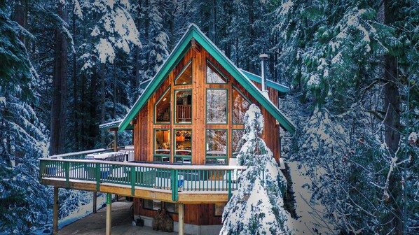 Med et stort gulv stort rom, 25 fottak, en gulv til tak stein peis (vi tilbyr en bunke av tre) og en vegg av vinduer, kan alle samle og ta i den fantastiske skjønnheten i Stillehavet Nordvest. Hovedetasjen store rommet åpner opp til et underholdende kjøkken, spisestue, bad og en 900 kvadratmeter vikle rundt dekk komplett med utemøbler, grill og nytt badestamp under et glassloft lysthus. Det har også en ny 300 kvadratmeter privat stein uteplass med peis bygget inn i åssiden.