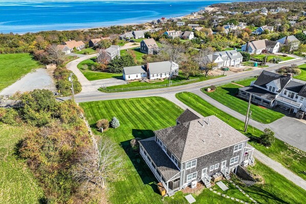 Beautiful property. Set up as a duplex which worked for our families. Supplied with every kitchen equipment you could need and paper and cleaning supplies. Great front lawn for our soccer games. Very short walk to the beach