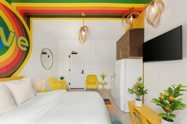 Koko Bayer's Love room screams her message of freedom in both a comfortable and relaxed setting. The room has unobstructed views of Denver's iconic art museum. Centrally located just a stone throw away from eateries, bars, and other top city destinations. This room will be sure to make your stay in Denver a memorable one. Make sure your phone batteries are charged, you will be sending a lot of photos to friends and family of this one.