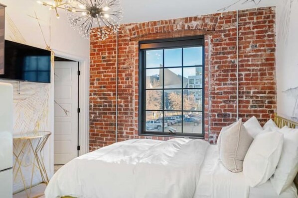 Enjoy easy access to your own private artist suite with a brand new bathroom, stocked kitchen, and luxurious bedding. There is a shared laundry room on site. Parking is not included in your reservation, but there is a paid parking lot adjacent to the building.