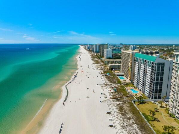Enjoy Emerald Towers 903 in beautiful Destin. This 2 bedroom, 2 bath unit is located on the 9th floor and offers a stunning view of the Gulf of Mexico from the newly refinished balcony. This spacious unit has a KING Master with an ensuite bathroom featuring a double vanity and oversized stand alone shower. The second bedroom has a FULL bed along side a TWIN bed with a 43" TV. A shared hallway bath has a tub shower combo. The modern minimalist living area has a futon sofa that can be used as a bed and arm chair that transforms to a bed for one person to sleep, the unit sleeps 7 overall. With 3 TVs, 3 DVD players, and CD stereo system, you will enjoy all the comforts of home. This is a very comfortable ninth floor unit. It is very inviting with great views of the coastline. This top quality resort condominium is located directly on the beach in the heart of Destin, putting the sugar-white sands within steps and the gorgeous Gulf of Mexico within view from your private balcony. Take note of the amenities this property has available to you: a sparkling pool, fitness room and a community grill area. While staying on the property and taking in the warm sunshine and cool breezes is a popular choice, Emerald Towers is also conveniently located within a few minutes drive to several golf courses as well as local shops and restaurants. Schedule your trip today! Living room and dining room furniture just updated in Feb 2024!!!