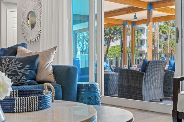 Welcome to Villa Cabana Palms, where relaxed coastal elegance meets resort-style comfort in one of Destin’s most desirable vacation settings. Located directly beside the 11,000 sq. ft. zero-entry lagoon pool, this rare poolside villa offers unmatched convenience and a true resort experience—just steps from your door.