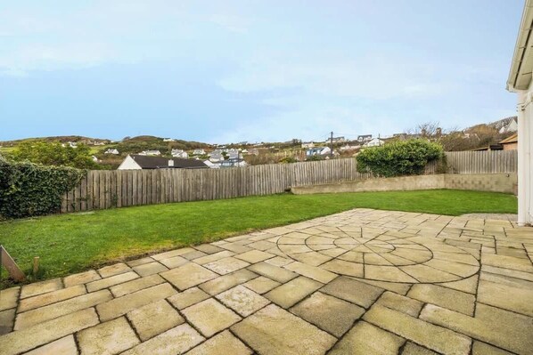 This Holiday home is situated right in the heart of Downings village, just off the Main Street, in a quiet circle of houses with large central green area. Beside the shops, hotels, cafes, restaurants, pubs and the main beach. 3 bed house (Sleeps 8 + Child Travel Cot) 2 bathrooms: 2 instant hot water showers + bath. Wood burning stove. Gas central heating. Large fully enclosed garden. Private off street parking. Bedroom 1: Large bedroom with 2 double beds. Bedroom 2: Large en-suite bedroom with 1 king-size bed. Bedroom 3: Ground floor bedroom with 1 king-size bed & bathroom beside it. Large living, dining and kitchen area. Wood burning stove. Dining table seats 8 and extends to seat 12. Kitchen with gas oven & hob, fridge, dishwasher, large pantry larder, kettle, toaster, all crockery, cutlery & cooking utensils. Washing machine, tumble dryer, clothes horse, iron & ironing board. 100 Megabit Sky WiFi, Interconnected TV, dvd player & movies, iPod player & speaker, radio. Board games, playing cards, library of books for adults & children, colouring pencils & paper for children. Beach tent, swing ball, kite, footballs, hurling sticks & sliotar, buckets & spades. Private off street parking at the house with additional parking within the development.
